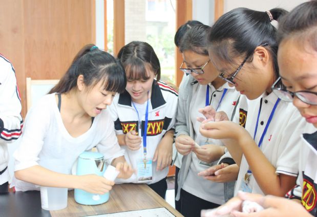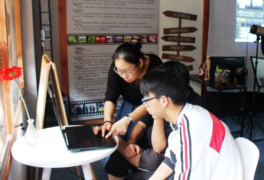 “这段视频合成我们需要用到四个轨道……”“老师,冰皮月饼皮的厚度这样可以么……”“来,我们一起再把这五个音唱一遍……”“老师,你看我做的小黄人怎样……”“How can I speak English better,Miss Sarah……”中午时分,绍兴中专“快乐大本营”学生社团教室中,欢声笑语不断,气氛热火朝天。