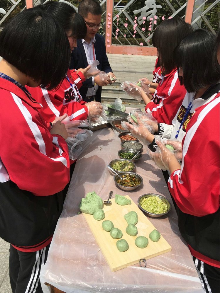 而在立人舞台,由财会经贸系组织的“同手共包清明艾饺”活动则请来了绍兴市民俗文化达人来指导学生包艾饺。“呀,漏啦……”在学生们的欢声笑语中,各种各样创意多样的清明饺在学生们的手中诞生。传承传统文化,继而以文化感染熏陶学生,是我校德育教育的新途径、新常态,也朝着文化强校迈着大步。