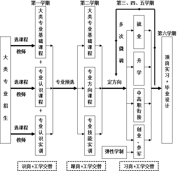 4.第六学期:顶岗阶-准员工上岗后,选就业单位