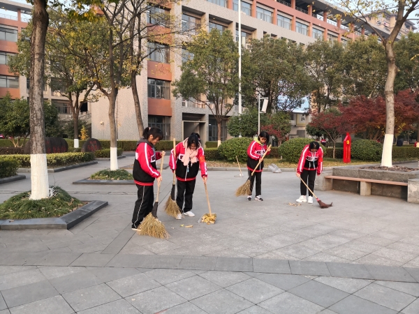 服务活动期间,同学们全员到齐,按规范及时上岗,有条不紊地进入工具间领取打扫工具。佩戴红袖套、穿好校服、挂好校牌、见到老师礼貌问好,并在工作期间认真对待,一丝不苟,不嬉笑打闹,不放过任何一处细小之处。整个服务活动过程,同学们积极认真,兢兢业业,不怕脏,不怕累,全心全意投入到打扫中,用百分百的热情,融化了天气的寒冷。同学们分为六个岗位区域,井然有序地保护着校园的干净整洁。