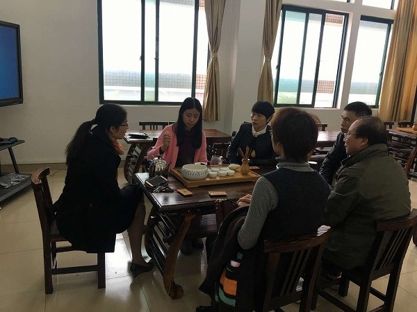 在广州市财经职业学校商务助理专业的特色实训室——茶艺室,广州财经学校经贸部副主任陈险峰和市场营销教研组组长盛宗玲等老师热情地接待了中专教师,陈丹瑜老师还向中专老师表演了茶道。双方就市场营销专业和商务助理专业的教学计划、课程安排、招生、实训、就业等进行了富有成效的交流探讨。随后中专财贸系教师参观了广州财经学校的商务谈判实训室、电话营销实训室、商务助理实训室、“美宜佳”校园超市。