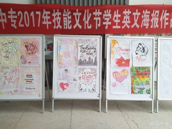 除了社团的活动以外还有在大厅内展示了同学们的感恩节海报,海报的主题是感恩母亲,每一幅海报都有他们对自己母亲的一份爱吧。在海报的旁边是英语书法,这些都是在经过层层筛选最后展现在大家的面前。