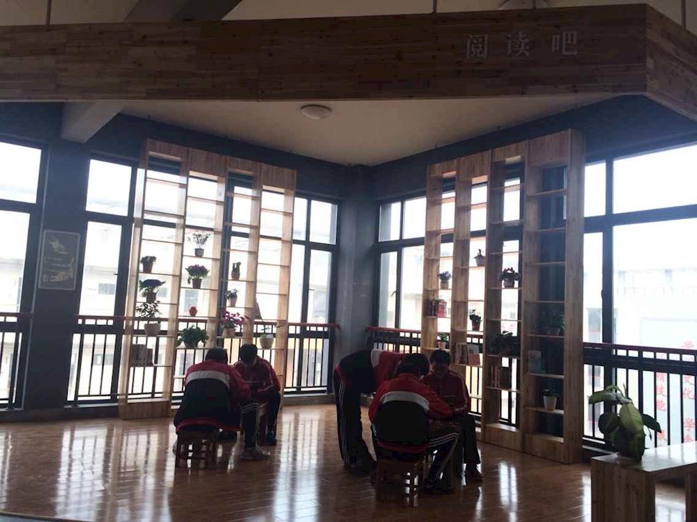 自从机械电气西南角的阅读吧布置好后,那片地方就热闹了起来。不仅木架上摆放了书本和花瓶,将这片角落装饰得赏心悦目,方便学生有空拿一本书看看,书架旁还摆上了两桌棋,更是吸引了很多学生前来切磋,有附近班级的同学,也有同学来自较远的班级。