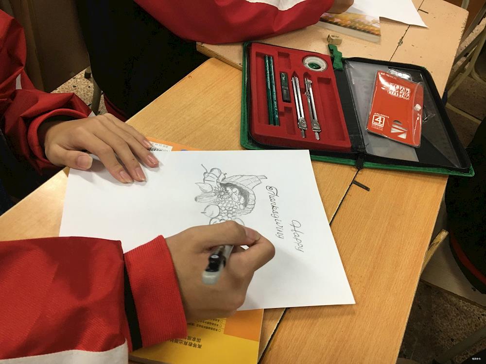 起初看到材料时,有些同学担忧难度太大,自己难以完成。但当同学们提笔,试着去绘画时,大家渐渐地专注在绘画上了。随着作品渐渐地成形,一幅幅出乎意料的图案完成了,许多同学表示没想到自己会画得这么好。