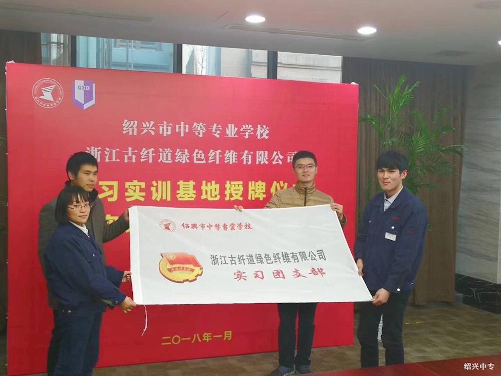 2018 年 1 月 11 日,leyu·乐鱼(中国)体育官方网站在浙江古纤道绿色纤维有限公司举行实习实训基地授牌仪式与暨实习团支部授旗仪式。绍兴中专李金光校长、学生处副处长李鹏、团委书记虞峰、机电系书记吴志燕携手古纤道企业领导温国奇、姜传忠、陈铖与杨最梅参加了此次仪式。