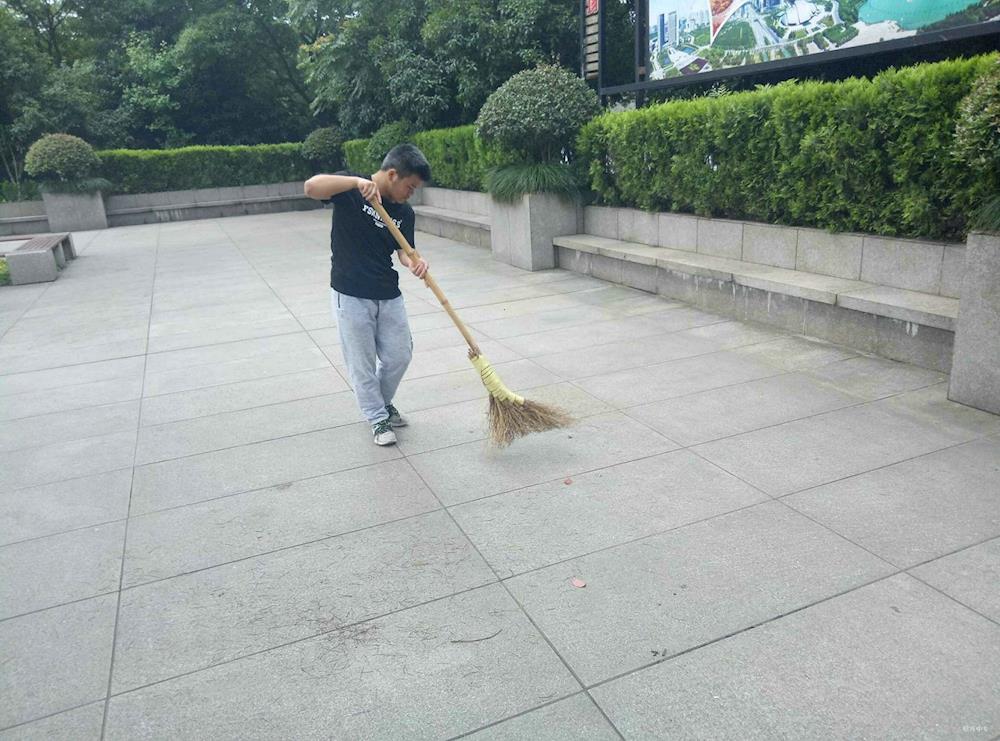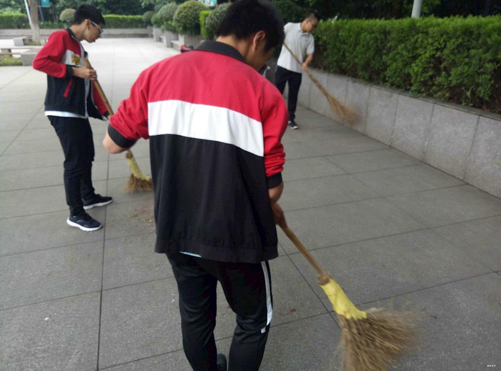 清晨,同学们早早地来到治水广场。在团支书的工作分配下,活动井然有序地开展。同学们认真地打扫自己负责的区域,实行地毯式的清理,把治水广场的角角落落都清扫了个遍,不留一片落叶。除了完成分配的任务外,有的同学还自愿帮助环卫工人,清扫地面,减轻他们的压力。到了中午吃饭时,同学们自觉地排成了队伍,有序地走进了餐厅就餐。饭后,同学们继续集合队伍,到治水广场的河沟边、树下、桥边等地,清扫角角落落。在打扫的过程中,大家脸上都洋溢着幸福的笑容。