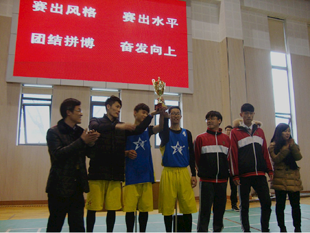 随后,通过层层角逐脱颖而出的13高考4班和13施工5年班会师冠亚军决赛。开场后,两队相互试探,打得较为谨慎,13施工5年更快地融入比赛,凭借头号球星娄吉祥同学的连续命中,取得了7:2的不俗开局。13高考4班及时请求暂停,手感回升的该队,一度将分差迫近至两分。紧张激烈的气氛弥漫在整个体育馆。娄吉祥同学又一次挺身而出,扮演了13施工5年关键先生的角色,三分线上,他貌似不经意的一掷,篮球在半空划出美妙绝伦的弧线应声入网。稳定军心的13施工5年此后多点开花,匪夷所思的灵活抛投,配合流畅的空中接力,防不胜防的高难度远投,他们迅速扩大战果。终场哨响,19比11的比分,让他们的加冕当之无愧。