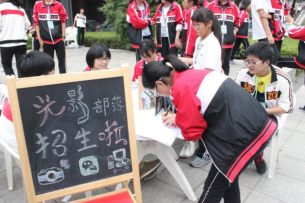 本次社团招新的有光影部落、外语社、舌尖之上、茶艺社、舞蹈社、艺行天下、创客联盟、手心同盟共8个社团。此次招新工作由各社团社长亲自坐镇,招新工作刚开始,就引来了许多新生前来咨询。各社团学长学姐热情的为大家讲解社团的作用,并让同学们填写报名表。在学长学姐的积极鼓励下,不少同学都去报各自喜欢的社团。