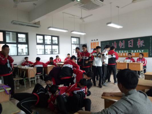 为了保证班会活动的顺利进行,同学们提前布置好了教室,拉开桌子,在教室中间留下足够大的空间来进行游戏。