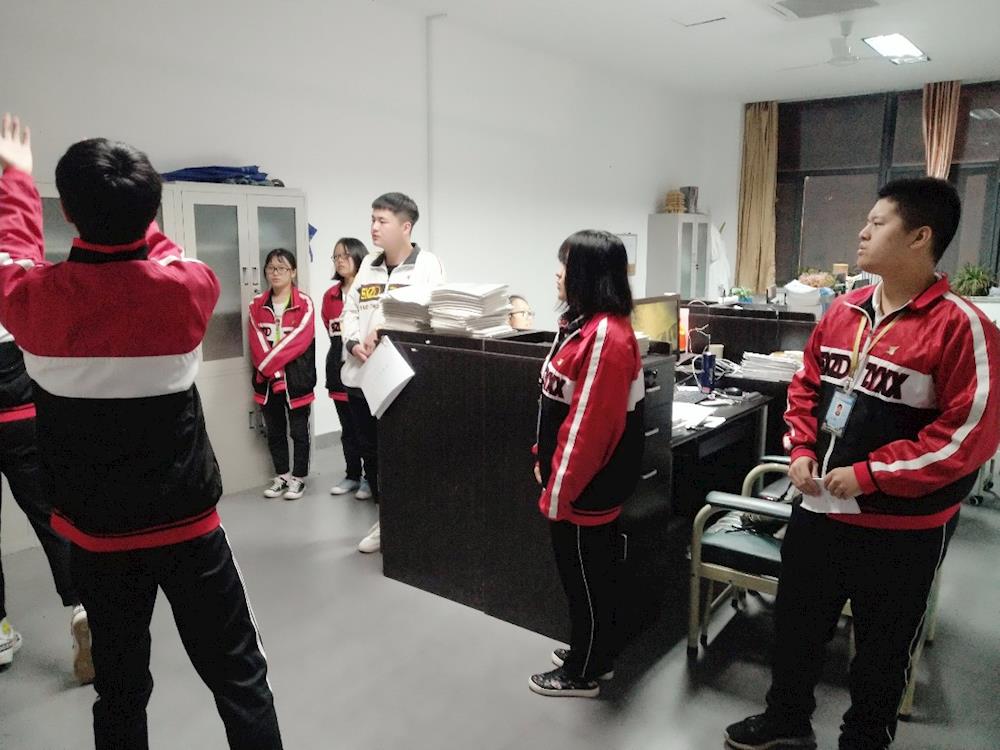 在吟诵部分,同学们加了一些舞蹈。在学习舞蹈时,跳舞同学难以踩准背景音乐的音乐点,所以在练习过程中出现了困难,但他们并没有放弃,而是一遍又一遍的去听去改,在办公室的地上翻来滚去地练习,尽量做到完美、有默契地完成动作,他们从没有因为自己衣服脏了想过放弃。