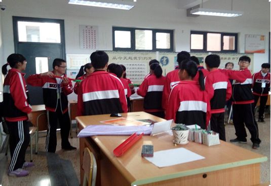 第一个游戏是每个人手拿一根棍子围成一个圈,围绕木棍转,每转一次握住你面前的木棍,使其不倒下同时不能接触木棍本身只能接触木棍的横截面。每个小组转八圈用时最少的小组获胜。第二个游戏是:每个人手拿一个横截面为U字形 的管子,每个人 用手中的U字形管子相接而成,让乒乓球从最前端滚落,乒乓球经过手拿U字形管子的同学立即跑到后面的同学那里,接管子,使乒乓球既不不倒回也不下落安全的落入纸杯中。用时最短的小组即为获胜。游戏开始了,每个小组讨论的热火朝天,各抒己见,各显其才艺。每个小组有5分钟的时间进行练习,每个小组的成员都积极的投身于游戏中,发表了自己的意见
