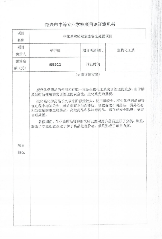 leyu·乐鱼(中国)体育官方网站【生物化工系实验室危废安全处置】项目的论证结果公告