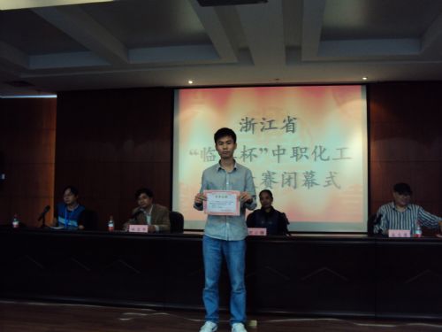 本次学生技能竞赛吸引了全省几十所中职学校化工专业的学生,参赛人数众多,比赛的内容是EDTA标准溶液标定和储液钙含量的测定,难度较大,对操作的要求较高,然而我校学生在指导教 师许丽 君、 车宇樑 老师的带领下克服了重重困难,参赛的三位学生10化学分析班吴华良、朱明良同学以第一、二名的成绩获得一等奖,10黄酒班蒋琼耀同学获得三等奖,我校代表队还以团体总分第一的成绩获得团体一等奖。
