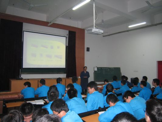 校级教学名师、机械教研室主 任黄利明 老师推出了《錾口榔头制作的工艺分析》一课。 黄 老师采用了项目教学法,以“錾口榔头制作”作为项目内容,通过展示图形,引导学生分小组运用形体分析法讨论分析榔头的形成过程,从而确定各小组的制作思路,接下来由各小组根据制作思路讨论出不同的制作方案、工艺流程及相应的工量具的选择。通过播放视频让学生观看錾口榔头的制作过程,最后各小组制定出加工计划。课堂上,学生既有个体的独立思考,又有小组的合作探讨,教师不仅仅限于传授知识,更多的成为一个启迪者、引导者和服务者。