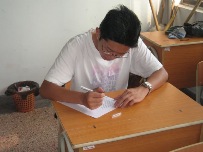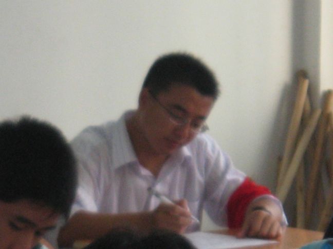 学生处老师在巡考的过程中,在09机电(2)班发现了一个熟悉的身影,走近一看,原来是该班班主任,今年刚分配到学校的 董炜 老师,原来他正在和学生一起参加《学生手册》考试。后来巡考老师又分别在09机电(1)班和09数控(1)班看到同样是今年分配到学校的阮晓丰和颜璐萍两位老师在参加考试。