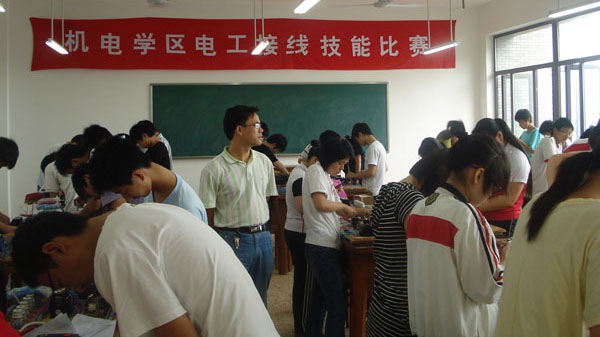机电学区推出了《机械识图与制图》《电工接线》二个达标项目,和《车工》、《钳工》、《电子焊接》、《机械CAD》四个技能竞赛项目。全体学生参加技能达标,96人次参加了技能竞赛,规模空前。其中《车工》《电子焊接》为今年新增项目。
