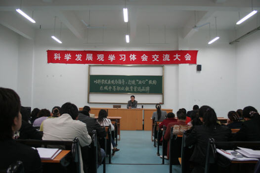 4月24日,绍兴中专在校实训楼一楼阶梯教室召开了科学发展观学习体会交流会。此次交流会是在各党支部互相交流推荐的基础上召开的,会议由校党委书记卢超岳同志主持,全体党员参加,全校教职工出席。