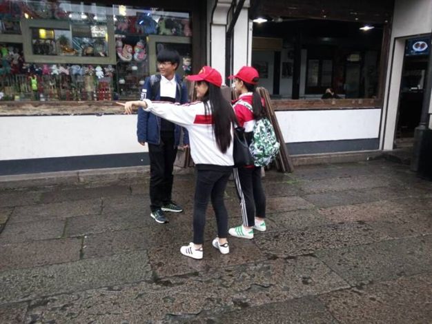 虽然是阴雨天,但是同学们志愿活动的热情却不减,有的同学向游客中心借来了清洁工具,开始清扫路上的果皮纸屑,一部分则用手捡起瓶瓶罐罐的放入可回收垃圾桶内;有的同学向游客分发我们事先准备的“攻略”,比如:‘公共厕所在什么位置,百草园、三味书屋的简介,哪家店铺的东西比较有特色……’;还有的同学站在景区地图讲解各个小景点位置分布,当游客有需要时就为他们带路。