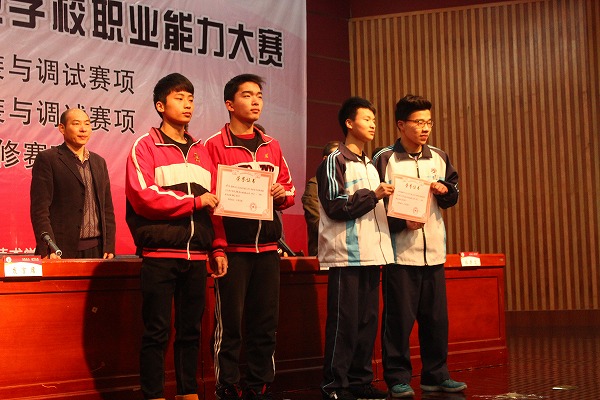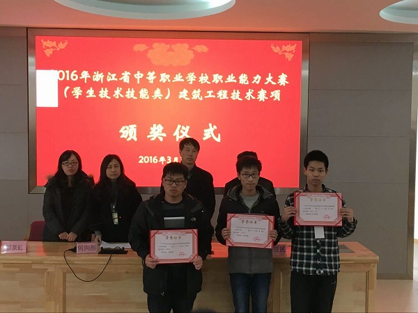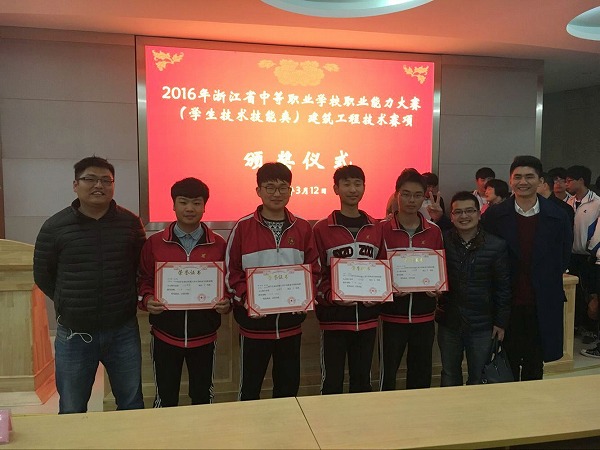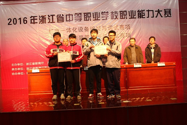 浙江省中等职业学校职业能力大赛是我省整合中职学校学生技能大赛、文明风采大赛、创新创业大赛和教师技能大赛等各项竞赛后唯一的一项综合性赛事。从2015年开始,大赛项目确定为学生和教师两方面,学生比赛项目包括技术技能和职业素养两部分。可以说,此项赛事已经成为了目前我省中职学生技能类比赛最高规格的赛事。今年,学校共有21人入围此项大赛。比赛结果,卢文举、冯晓君老师指导的陈伟烽、邵浩琦、沈烨东、封紫阳同学荣获工程测量赛项团体第一名;钱瞫初、徐浙明老师指导的王涛同学荣获液压与气动系统装调与维护赛项第一名;施建明、薛振华老师指导的冯建强、朱锦杰同学荣获浙江省中职学校职业能力大赛电气安装与维修赛项团体一等奖;叶焕锋老师指导的马华刚同学荣获单片机控制装置安装与调试赛项一等奖;林意、王磊老师指导的施永涛同学荣获建筑CAD赛项一等奖;石小飞、傅美玲老师指导的李艳茹、蒲睿智同学荣获工业分析检验赛项一等奖。