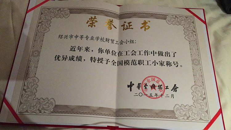 日前,绍兴中专财贸工会小组被中华全国总工会授予“全国模范职工小家” 称号!
