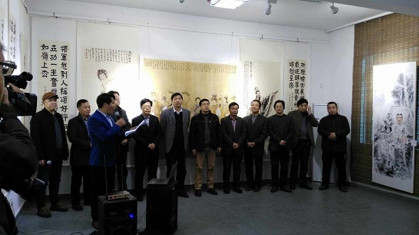 陈蔚南老师是绍兴中专美术、书法教师,校工会古风社社长,也是绍兴市华夏书画学会秘书长兼书画分会会长,多次举办过个人画展。本次画展展出了陈蔚南老师历时两年半创作出来的越剧十姐妹18幅系列作品,其中袁雪芬、尹桂芳、范瑞娟、徐玉兰等多位越剧大师的风采跃然纸上,神情毕现,画面气韵通畅、大气磅礴,较好地表现了越剧名家们的绰约风姿,赢得了所有到场嘉宾的一致好评。其中陈蔚南创作的国画《越剧十姐妹》去年7月18日曾入展由民盟中央美术院在中国美术馆举办的“中国民主同盟艺术大展”,得到了民盟中央主席张宝文、中国文联艺术司司长冯远等领导的首肯。这次同时展出的杭州吴明儿、河南杨征两位先生的作品,同样精彩纷呈,他们的作品以唯美的笔触较好地表现了京昆名家的艺术风采,有意无意地散发出“越剧诗意”般的妍美,同样令观赏者拍案叫绝。