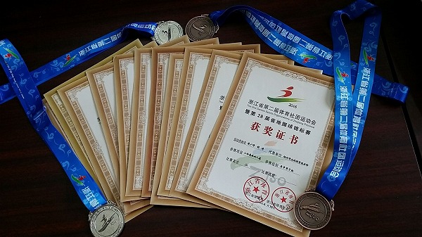 地掷球运动是一项集智力、技巧和信心能力综合体现的运动项目,对青少年学生的体力和智力发展都有较大的推动作用。2014年绍兴中专将该项运动引进了校园,在短短的两年间,地掷球运动在绍兴中专生根发芽,蓬勃发展,并结出了累累硕果。绍兴中专自2014年起年年被评为浙江省开展地掷球运动先进单位,负责该项目训练的李鹏老师也年年被评为省级开展地掷球运动先进个人。在浙江省地掷球协会年会上绍兴中专更是被省体育局领导多次表扬,并常常受邀在大会上作先进典型发言。可以说,地掷球运动已经成为绍兴中专一项极具特色的校园体育活动,随着该项活动的深入开展,必将更好地促进学生体育素质的拓展和提高。