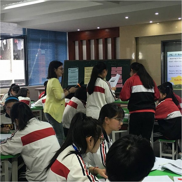 图为绍兴中专金丽娜老师的口语课 Booking Hotels