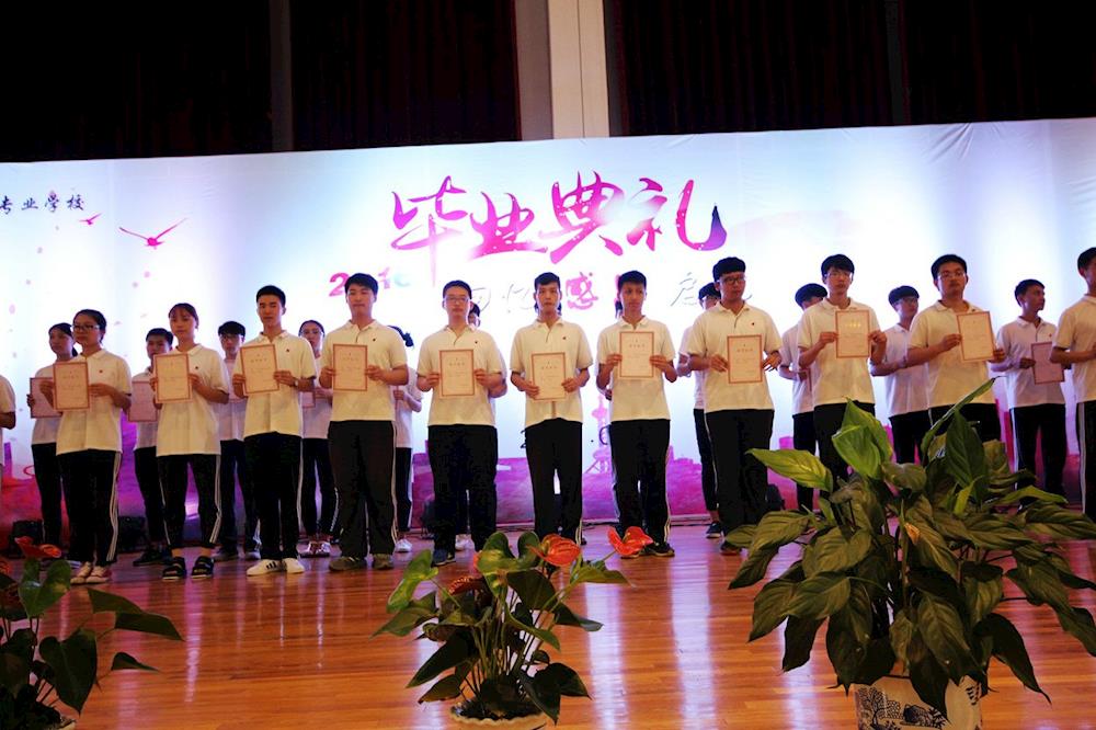 典礼上,学校师生合唱一曲《绍兴中专版南山南》,将所有学子们回忆的思绪带回到了毕业典礼的现场。校党委书记王慧莉隆重宣布,经学校批准, 2016届的1213名学子正式毕业了。学校领导和家长代表亲自上台为全校各系部的优秀毕业生颁发荣誉证书,今年学校共有143人获得了“校级优秀毕业生”称号,当优秀毕业生上台接受师长们的颁奖和祝福时,掌声久久地在礼堂里回荡。