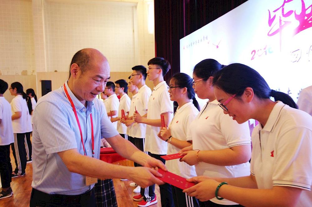 典礼上,校长邵国成为即将远航的毕业生讲授了“最后一课”,他寄语同学们要牢记“‘学致用、行至诚’的校训,在明辨中找准奋斗方向,在笃实中创造青春业绩,志存高远,脚踏实地,不断学习,不断创造新的成绩,为母校增光添彩。”邵校长深情叮嘱毕业生,饱含真情、意味深长的讲话,赢得了在场师生热烈的掌声。