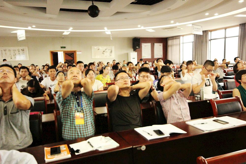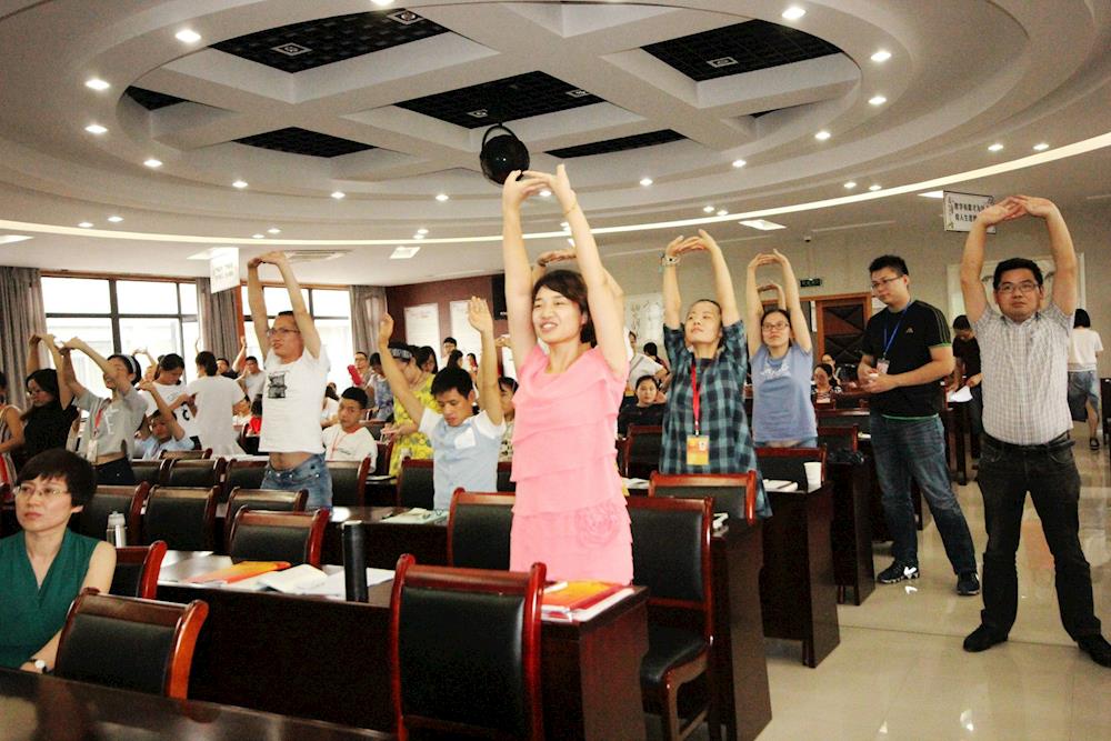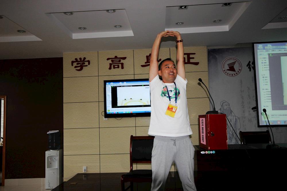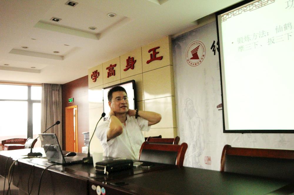 讲座的间歇期间,学校体育教研室的李鹏老师还为大家传授了健身气功八段锦的基本动作,为老师们在工作和生活之余强身健体提供了一个有效方法。