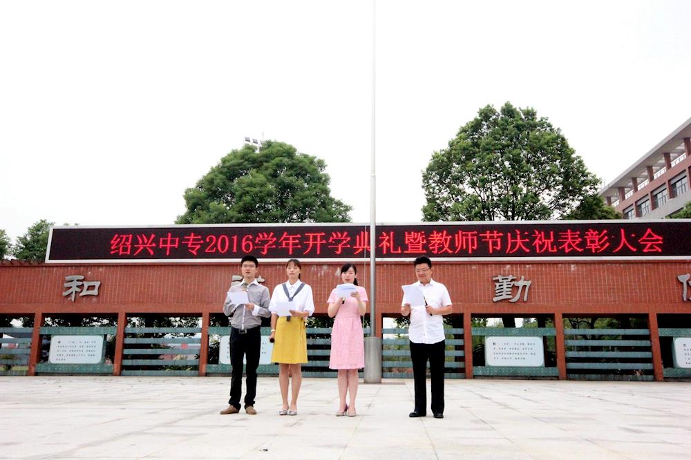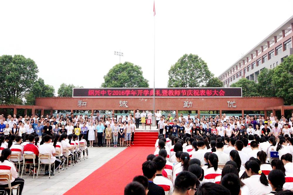 无人机引航、师生同台走红毯、听校长讲“一训三风”故事、新教师向老教师献花、全校近3000名学生同行拜师礼。9月10日上午,绍兴中专迎来了2016学年的开学典礼暨教师节表彰大会。在本届开学典礼上,100多位师生走上了被誉为“立文化大道”的红地毯,当天这些受表彰的师生们成了校园里最闪亮的明星,在鲜花、掌声、闪光灯和奖杯的包围中熠熠生辉。典礼结束后,师生们纷纷点赞,原来开学典礼也可以很时尚,我们很喜欢。