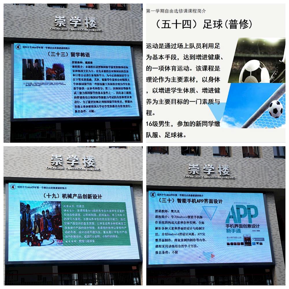 今年的选修课颇为“吸睛”,以“立人”为目标,完全是兴趣导向,“潮课”、“热课”、“时尚课”应有尽有,为同学们提供了多样选择的机会。“潮课”非学校与越秀外国语学院中高职联手打造的趣味韩语、留学韩语课程莫属,学习优秀的同学可以直接推荐去韩国留学,绝对是中专一大新潮。“热课”是一向受学子热捧的足球、篮球、乒乓球等体育类课程,运动健身是每个中专人都热爱的事儿。“时尚课”是今年特别推出的机械产品创新设计、智能手机APP界面设计、城轨礼仪等课程,既接绍兴地方之地气,又连时尚之元素,实在是亮眼。
