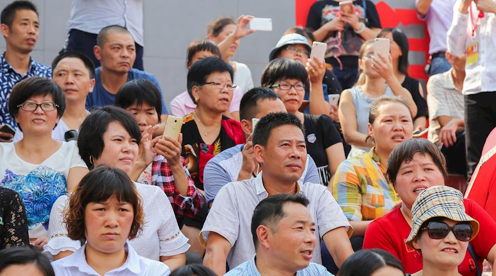看台上的家长代表拿出手机拍下孩子的精彩瞬间