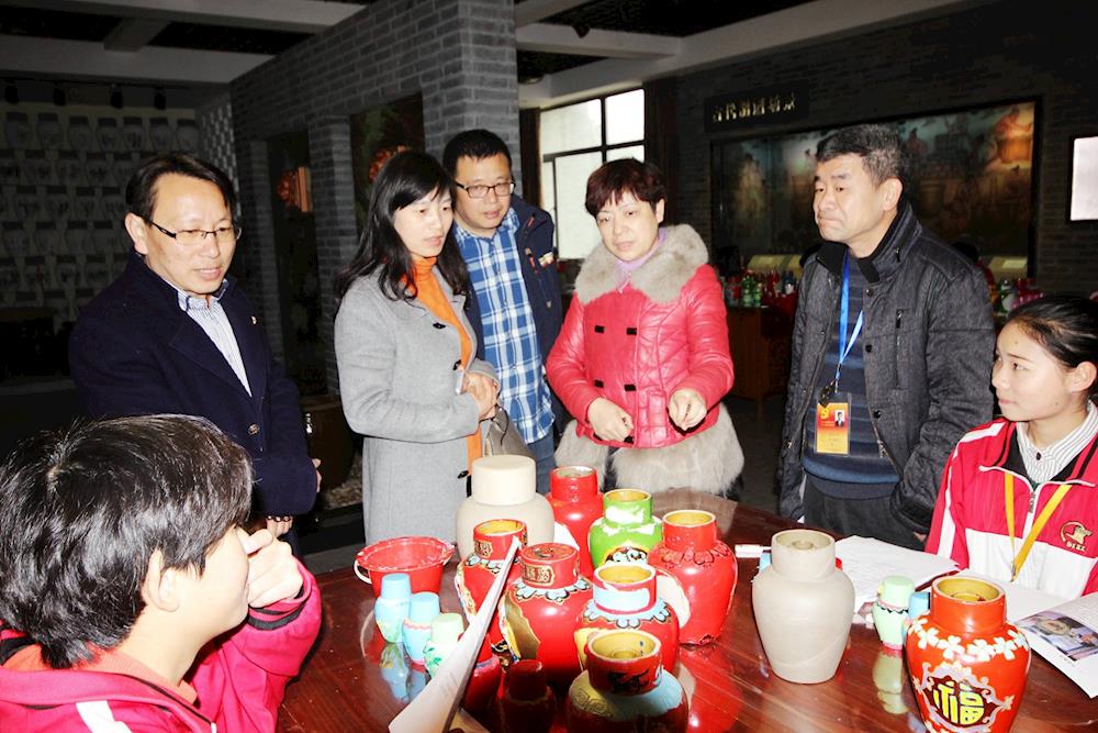 潘丽莉老师向参观学校的客人介绍黄酒花雕工艺