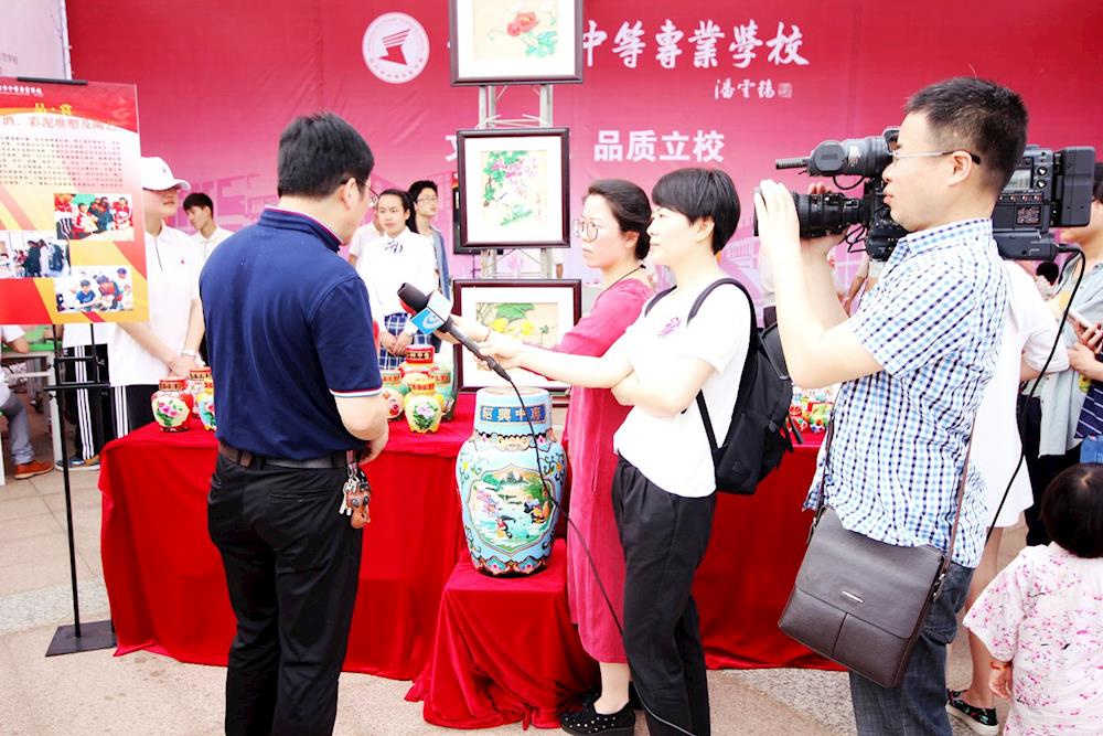 在2016年全市的职教成果展上新闻媒体采访我校黄酒专业