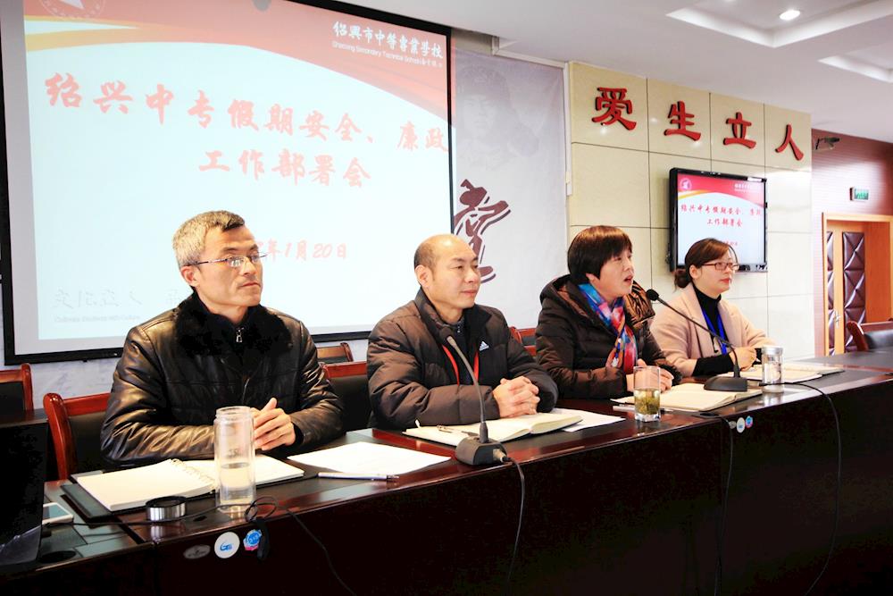寒假将至,春节临近,为确保全校教职工过一个安全、廉洁、文明、祥和的假期,1月20日下午,绍兴中专召开了2016学年第一学期假期安全、廉政工作部署会,本次部署会由校党委书记王慧莉主持,校长邵国成、副校长顾益明、副校长於芳等学校领导出席会议,全校各部门200余名教职工参加了本次会议。