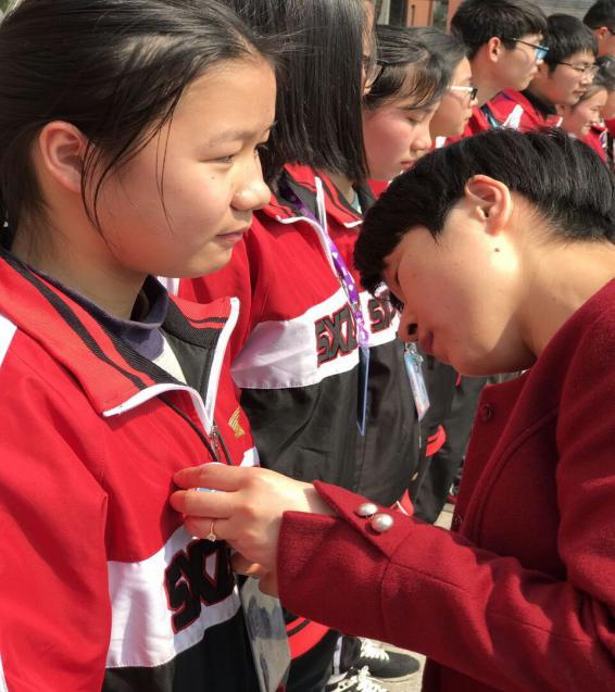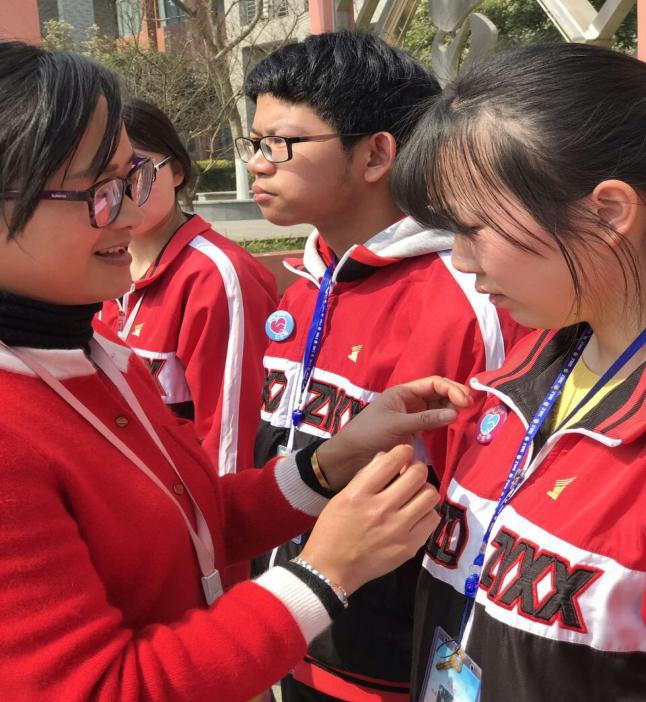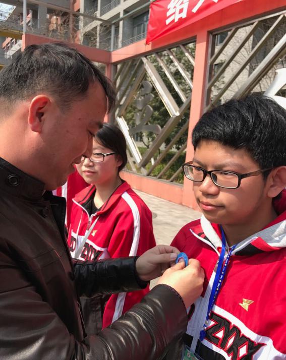 学生处副处长张佩丽老师为获奖者佩戴徽章 学生处傅处长李鹏老师为获奖者佩戴徽章