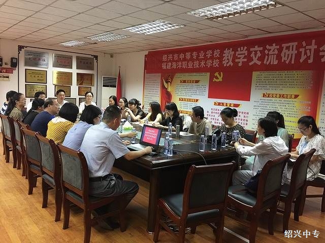 福建海洋职业技术学校非常重视这次教学交流活动,绍兴中专语文组一行抵达对方学校之后,对方学校校长吴方平、副校长杨武海、教务科长李秀凤及全体语文组教师接待了我们。吴方平校长对我们的到访表示热烈的欢迎,同时向我们介绍了福建海洋职业技术学校的基本情况、办学理念以及今后的发展方向。主管教学的杨武海副校长则是向大家介绍了学校的教学科研工作、师资队伍建设的基本情况。随后,两校语文教师共同观摩学习了郑怡老师关于《荷塘月色》的说课展示,聆听了林秋英老师关于语文教材解读与质量测评,以及朱开兴老师关于中职语文教师教学自我突围等学科专题报告,同时,两校语文教师还围绕着如何提升中职课堂教学、目前语文教学中存在的困境,传统文化与时下语文课堂的对接、学科教学方法与教师素养等共同关心的话题进行了深入而有效的交流,在交流中,我们拓宽了视野,交流了经验,也互相探讨了困惑,这对于我们自身的学科建设必将起到积极的推动作用。