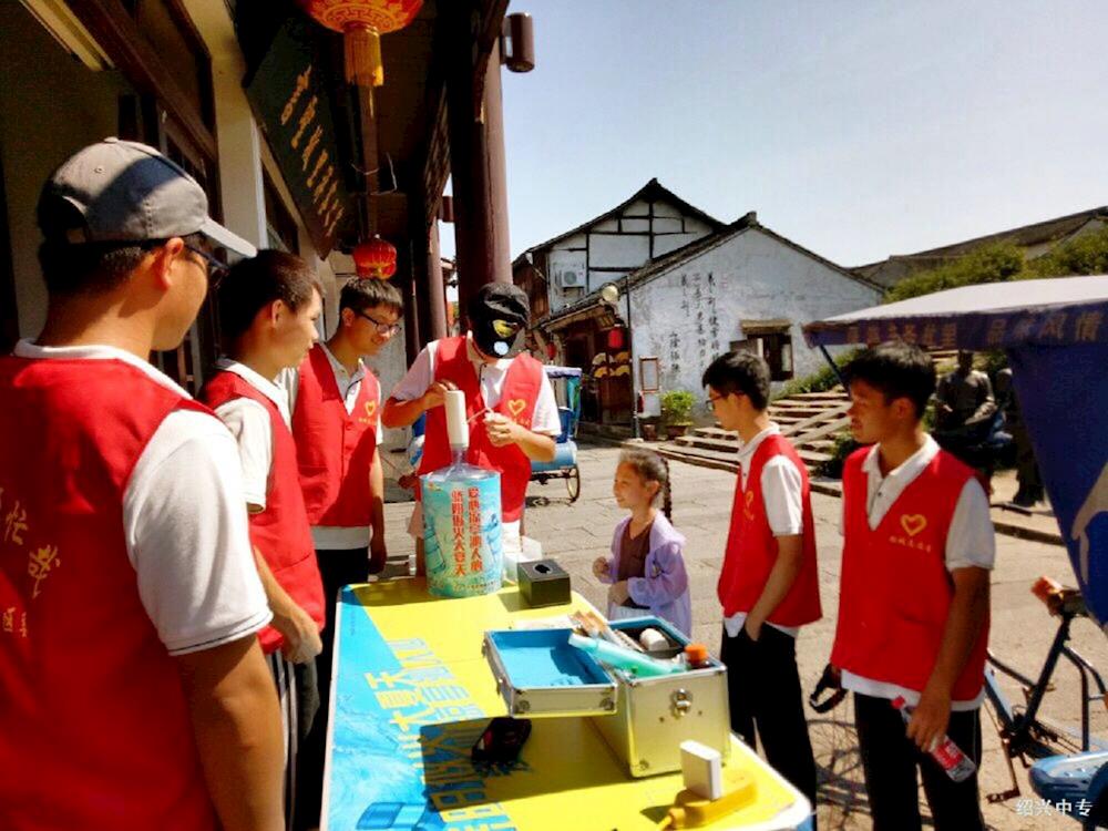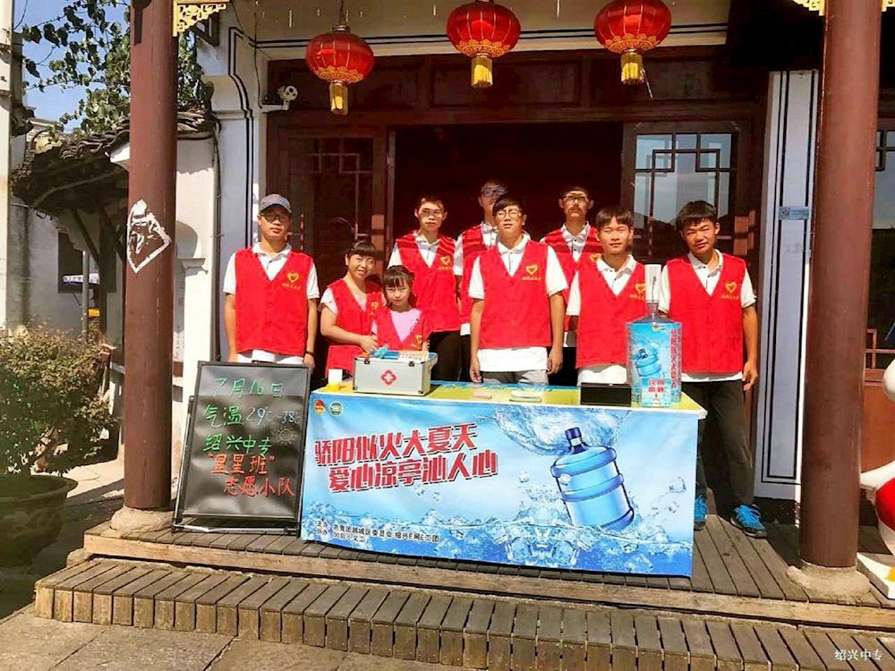7月16日,一个炎热的夏日,16机电五年班的同学们参加了“爱心凉茶亭”的志愿服务,在书圣故里为过往路人“送清凉”。