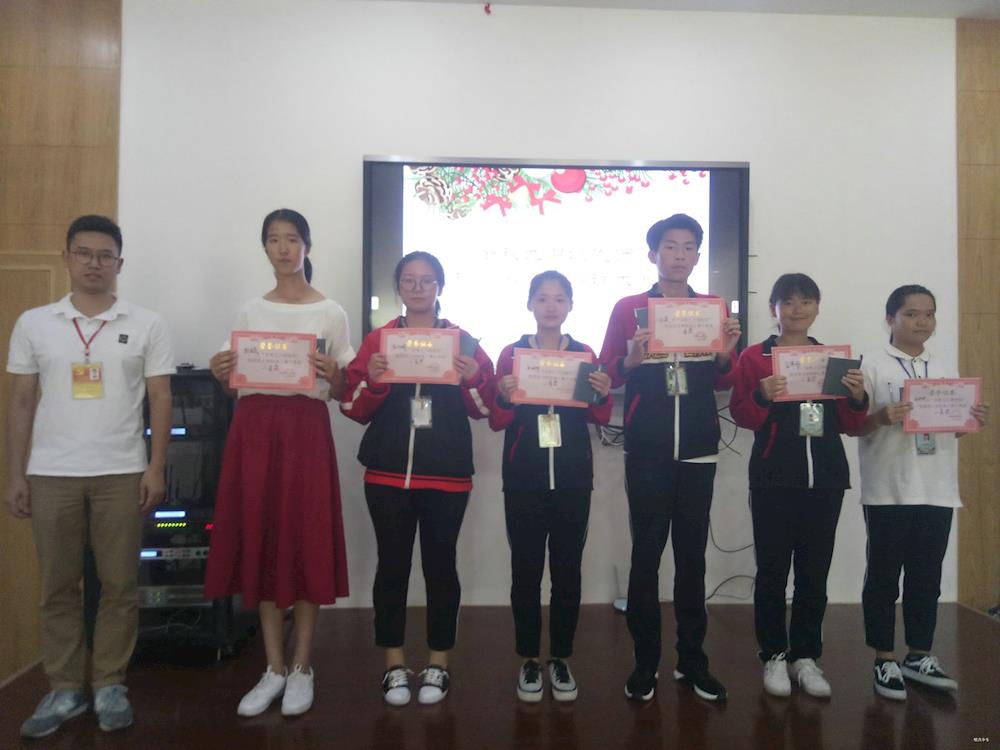 团委老师为获奖同学颁发奖状和纪念品以资鼓励
