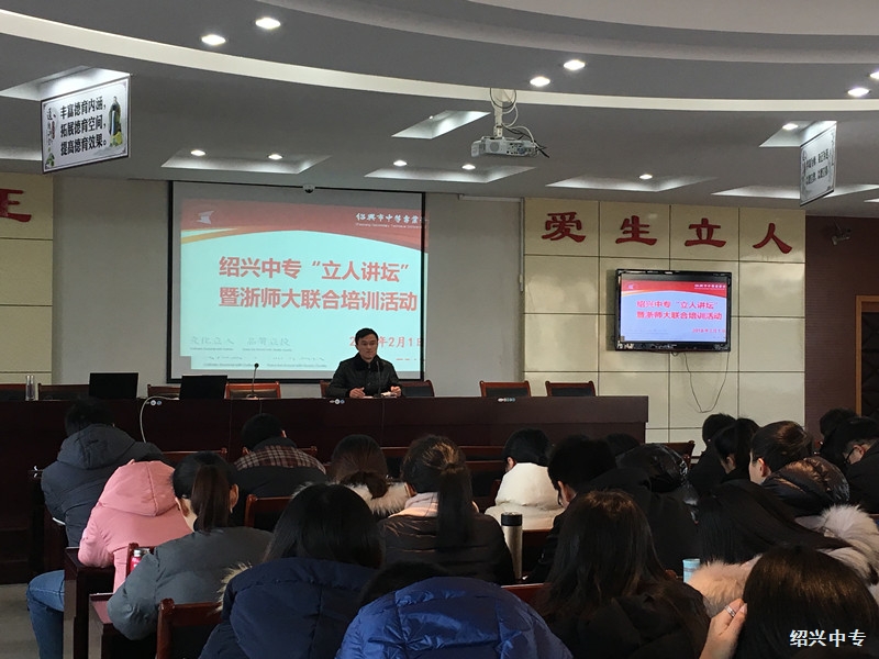 2018年2月1-2日,青年教师“立人讲坛”暨浙师大联合培训会在学校崇德楼四楼会议室顺利举行。本次活动是我校与浙江师范大学联合举办的培训活动,邀请到的专家有金华市教研室职教部主任、特级教师张国红老师,浙江师范大学职教中心主任、副教授杨志强老师和浙江师范大学职教学院院长助理、副教授张棉好老师,三位专家从不同层面开展了精彩的讲座,使在座的青年教师受益匪浅。
