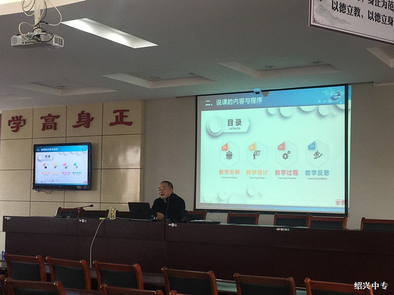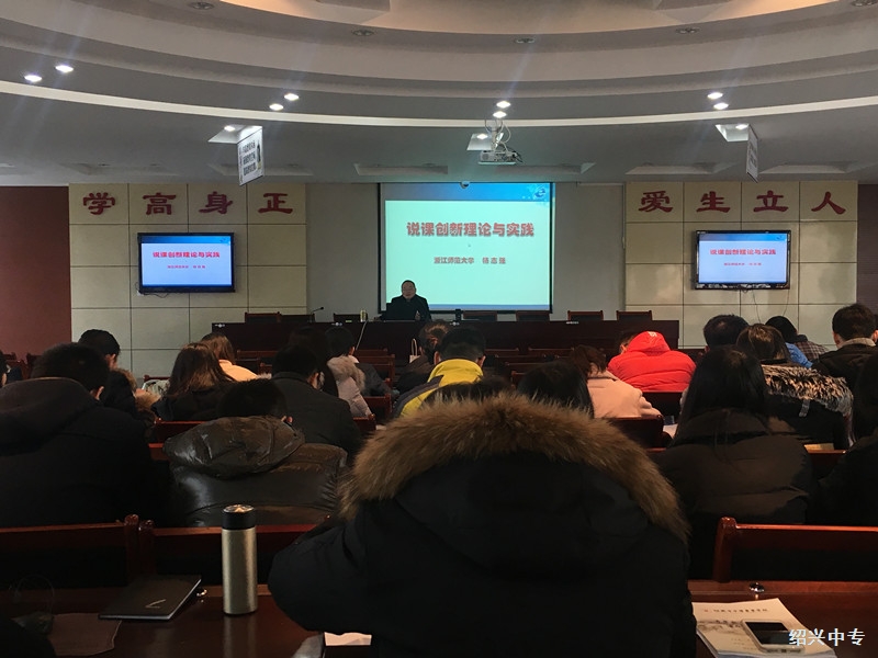 第二天上午,浙江师范大学职教中心主任杨志强老师开展了《说课创新理论与实践》的讲座。他从说课的涵义、内容与程序、说课易出现的问题、说课的要求和创新五方面展开,通过解说与案例分析展示指出,好的说课,就要先想好教学构想、做好教学过程,后学会教学反思,要不断创新说课方式,这使青年教师们对如何说课有了更深一步的了解。