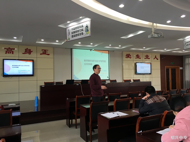 下午,浙江师范大学职教学院院长助理张棉好老师开展了《中职教师课题申报实务》的讲座。从对研究科研的解说,到如何开展课题研究,他以优秀的案例分析与展示,使青年教师们对课题申报规范与技巧得到了实质性的提升。