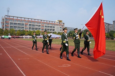在雄壮有力的运动员进行曲中本届运动会的开幕式正式开始,7名护旗手昂首挺胸、精神抖擞,护拥着本届运动会的会旗入场。伴随着现场解说员富有激情的入场式介绍,全校各参赛班级方队意气风发、精神抖擞地步入运动场,他们迈着整齐的步伐,呼喊着嘹亮的口号一一走过主席台,接受学校领导、全校师生和在场观众的检阅。各个班级同学斗志昂扬、精神饱满,充分展现了中专学子积极向上的精神面貌。短短的入场式,在有限的时间内,各班竭尽所能展示自我,不仅有阳光的青春活力,也有饱满的爱国情怀、坚定的高考拼搏的决心以及特色的专业展示等等。