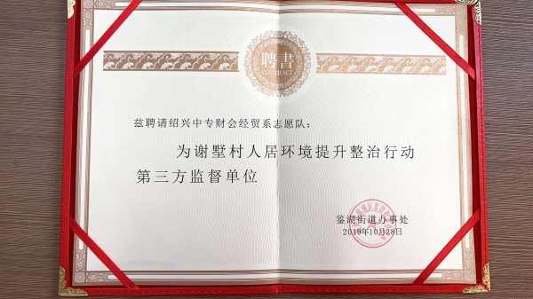 为做好学校党建带团建、鼓励学生积极深入社区开展社会志愿者活动,2019年11月4日,绍兴中专财会经贸系志愿者队接受鉴湖镇政府的邀请,参加了“绍兴城南谢墅村人居环境提升整治行动第三方聘请会”。