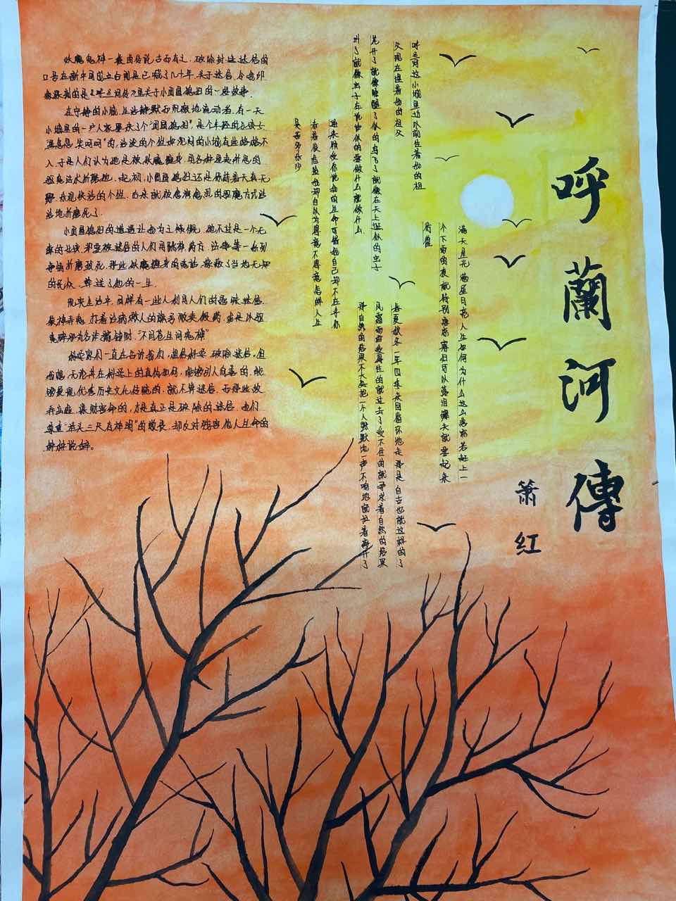 在同学们的认真构思之下,众多优秀的作品纷纷踊跃出来。这些作品主题鲜明,构思精巧,色彩艳丽,充分体现了学生的才华和创作能力。或是绘图逼真,内容深刻的《浮士德》,或是浓墨重彩的《呼兰河传》,或是仿佛能让人感受到澎湃海浪的《老人与海》。每一张海报,都体现着同学们的精思细想。各语文教师们也感受到了同学们的认真,纷纷为他们打下了代表肯定的分数。