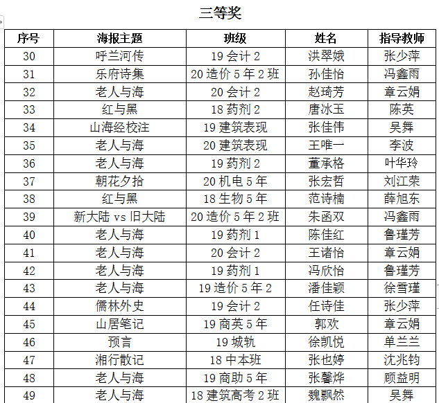 在语文教研组的各位老师们的慎重思考之下,本次评比结果如下,祝贺获奖的同学们!